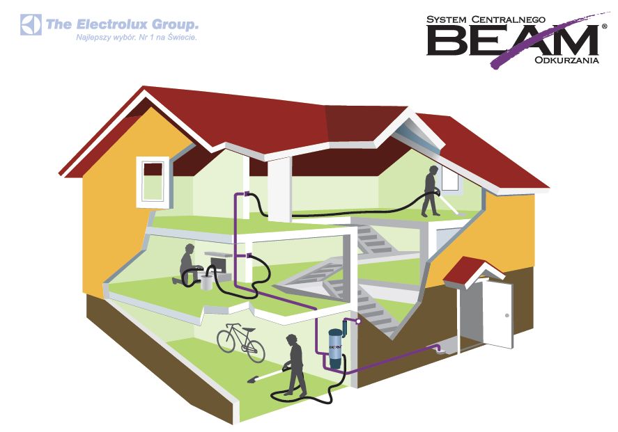 Jednostka centralna, czyli odkurzacz, zainstalowany na stałe w dowolnym pomieszczeniu gospodarczym, np.: piwnicy, garażu, kotłowni. Odkurzacze BEAM posiadają system filtracji cyklonicznej, współpracujący z samooczyszczającym się filtrem mechanicznym CleanStream.